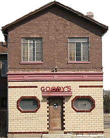 Goody's Bar (949K)  - A few blocks north of the South Park church is another Dayton landmark - Goody's Bar.  In the original shot, almost a quarter of the building is blocked by a huge traffic light on a post.  Editing that out caused some of the tiles left of the doorway to look a little strange, but I doubt most folks would notice. This is one of the smallest structures on this page. You could probably start with the O-scale version, then go to the S scale version if it seems too big. |   | |