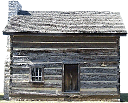 Moraine Log Cabin (901K) - About ten miles south of the Armory, there is a tiny historical preserve in Moraine, Ohio.  This log cabin is an excellent representative of the kind of log cabins the pioneers built in this region.  10x10" or larger beams were chinked enough to link together. Then after the beams were stacked and the roof was in place, the huge cracks between the logs were stuffed with a mixture of clay and horsehair or whatever materials were available (today they use a kind of concrete).  The front step was probably a big limestone block that was already "repurposed" by the time this building was moved.  But the missing step gives you the chance to add a little depth to the scene.