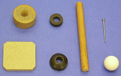- For the "fat part" of the base, you can use a sliced-up broom handle or the plug from using a hole saw. For a larger version, you may use all or part of a 35mm film canister. But If you use a film canister, weight it down with plaster, glued-in gravel, or something before you glue on the wider base - otherwise it will be very top-heavy.