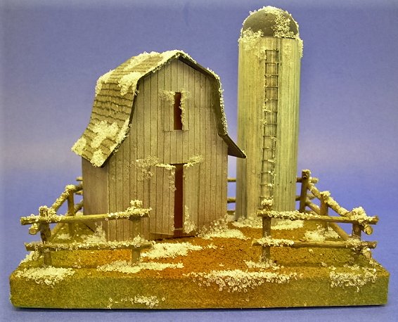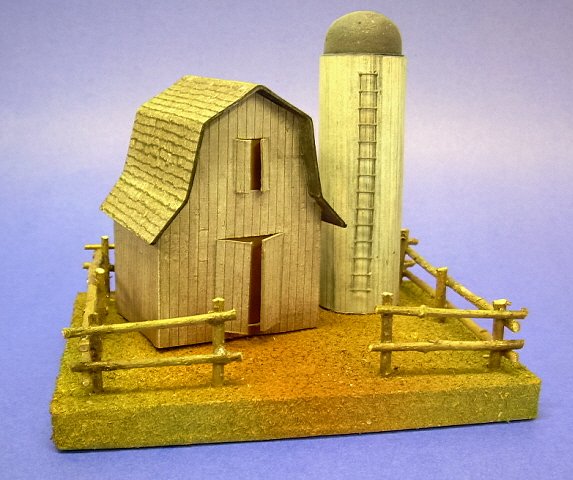 - Glue barn and silo to base. Note that barn location is just slightly different angle than drawing. This was done to create ?visual interest?.