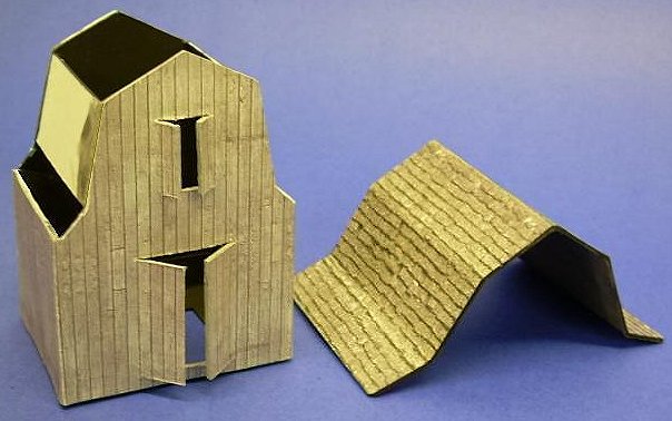 - Paint the exposed edges of cardboard that will not be covered when the printed siding and roof are applied.