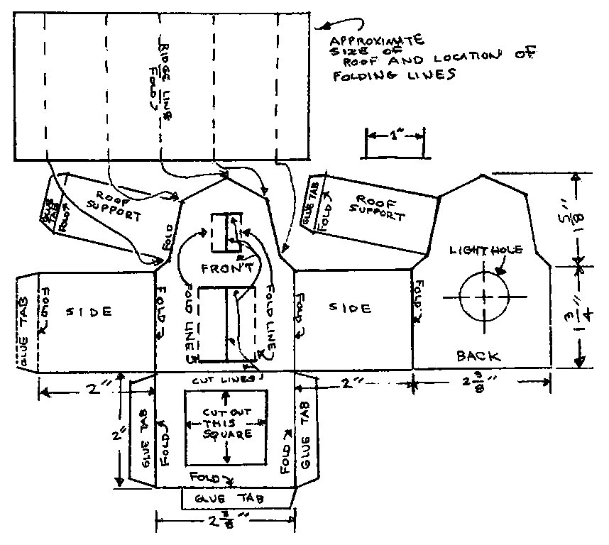 - Score the fold lines of the barn walls, then cut out that piece and fold on score lines. You may paperclip the barn together while you are testing the roof if you wish.