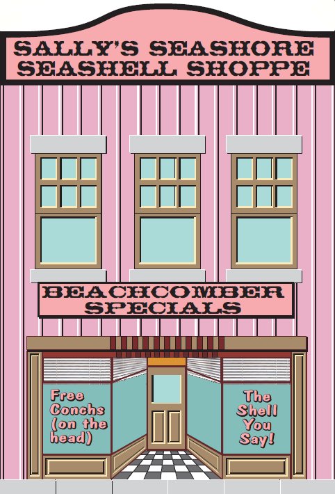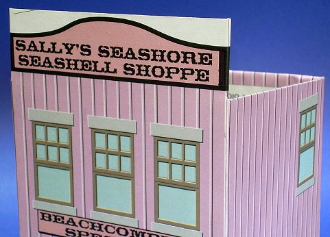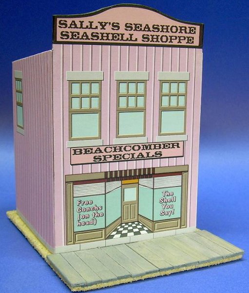 Like the original Building Tinplate Storefronts project, this project was inspired by a series of candy containers that were made in the early-to-mid 1900s by West Brothers. Each container included a glass full of candy that you could see through the house's "windows." A photo of the one of the original tins is at the left. If you sign up for our Trains-N-Towns(tm) newsletter, we'll let you now when we create and upload more storefronts or other projects you might find helpful. Building Seaside Store Fronts - from Big Indoor Trains(tm)After Paul and I started creating our first Tribute to Tinplate(tm)" buildings, we both started combing the Internet for photographs of worthwhile projects. Once we got started with storefronts based on the West Brothers' candy boxes, it wasn't hard for Paul to keep imagining new versions. Paul envisions these buildings as a relatively simple addition to our Sandy Shores beachfront-style structures and accessories. Or they might suit the needs of a person who likes to keep the same tinplate-style village set up year-round but likes the idea of seasonal adjustments.The only real difference between building these houses and our original Tinplate Storefronts is in the base. Instead of a a sidewalk/curb appearance, I've used popsicle sticks and sand to provide a boardwalk appearance. What You Will Need