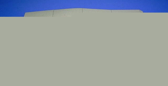 Because I didn't cut the crest's shape out, the building's crest looks a little funny at first. I could have cut it out ahead of time, I suppose, but then I'd have an extra variable while trying to align the graphic for the store front with the left and right edge. Or worse yet, I'd discover that I had cut the crest shape wrong and have to start a building all over again. Trimming the CrestWhen the glue for the front has dried completely (meaning overnight at least), use a very sharp Xacto-style knife to trim the crest to match the shape of the graphic. Don't rush this job or try to cut all the way through both layers of cardboard on the first pass. Instead, make many light passes.