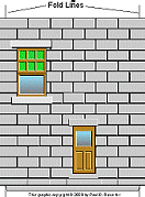 Building a "Mockup"You will save time and sanity in the long run if you print the graphics in low-res B&W first to make certain that the are the right size for the plans you have printed out and that they are the right size to go with the rest of your equipment.First, make certain that the plans you have printed are the same size as the graphics you have printed. Sadly, it is very easy to download all the right graphics, then click the wrong button (such as "fit to page") when you go to print. Worse yet, a few printer drivers make all of those decisions for you unless you click on the "advanced" button or some such. As silly as this step may sound, use cheap paper to print the plans, then print the graphics in draft mode in black and white (to save toner cartridges). You can try holding both sheets up to the light, but sometimes it's hard to get a complete "picture." Remember, when you score and fold the frame pieces, the actual structure should be a bit wider in each direction than the pieces you cut out, because you need to compensate for the thickness of the cardboard you are using. Paul's wall graphics extend the wall pattern beyond the fold lines to compensate for any minor differences, but don't count on that compensating for any major discrepancies. The best way to be sure you have plans in the same scale as your graphics is to fold the graphics along the fold lines, then cut them out and hold up to the frame pieces. Again, the frame should be slightly smaller, especially horizontally. If it isn't you should adjust the size when you transfer the plans to the card stock. Mismatched sizes between graphic and plans is a problem that is much easier to head off than it is to solve once you've cut out the building frame. Then while you have the cheap printout cut out anyway, tape or glue it together and set it alongside the stuff you already have to be sure it's the size you want. If not, select a different scale and try again.