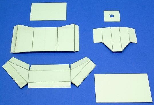 Building a "Mockup"You will save time and sanity in the long run if you print the graphics in low-res B&W first to make certain that the are the right size for the plans you have printed out and that they are the right size to go with the rest of your equipment.First, make certain that the plans you have printed are the same size as the graphics you have printed. Sadly, it is very easy to download all the right graphics, then click the wrong button (such as "fit to page") when you go to print. Worse yet, a few printer drivers make all of those decisions for you unless you click on the "advanced" button or some such. As silly as this step may sound, use cheap paper to print the plans, then print the graphics in draft mode in black and white (to save toner cartridges). You can try holding both sheets up to the light, but sometimes it's hard to get a complete "picture." Remember, when you score and fold the frame pieces, the actual structure should be a bit wider in each direction than the pieces you cut out, because you need to compensate for the thickness of the cardboard you are using. Paul's wall graphics extend the wall pattern beyond the fold lines to compensate for any minor differences, but don't count on that compensating for any major discrepancies. The best way to be sure you have plans in the same scale as your graphics is to fold the graphics along the fold lines, then cut them out and hold up to the frame pieces. Again, the frame should be slightly smaller, especially horizontally. If it isn't you should adjust the size when you transfer the plans to the card stock. Then while you have the cheap printout cut out anyway, tape or glue it together and set it alongside the stuff you already have to be sure it's the size you want. If not, select a different scale and try again. Cutting and Scoring the Frame Pieces