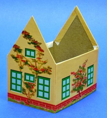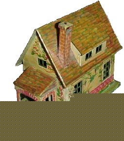 Like the A photo of the original structure that inspired this project is shown at the left. I'll try to get a better photo next time I see one at a train show. Although a person good with tools could use our plans and graphics to build our "Tribute to Tinplate" structures from sheet tin, we show how to do it with cardboard. Ironically, this reflects yet another tradition - when tinplate trains and towns were in vogue, Japanese companies manufactured heavily-shellacked cardboard houses and stations that you could use to supplement your tinplate empire. Today's putz house collectors call these old Lionel and Ives-inspired cardboard houses "Lackies," because of the lacquer that made them almost as shiny as the metal structures that inspired them.