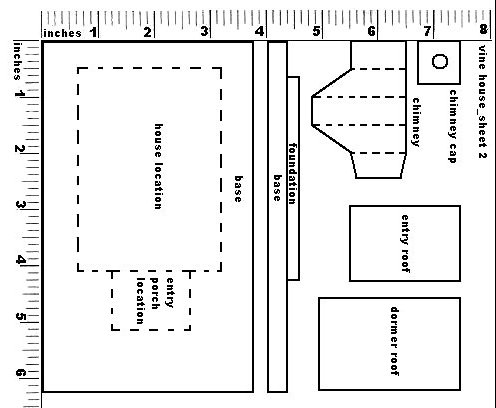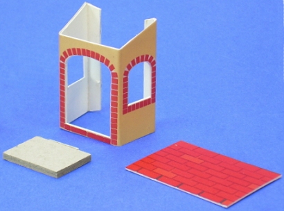 Building a Vintage Tin-Style CottageThis project was designed to look good with vintage trains. When Paul sent me the original graphic, he gave me many options to choose from, including different roof colors. We also negotiated a little about the way I wanted to do the windows. The end result is that there are several different ways to build this project, and Paul about lost his mind trying to sort them all into an article that still made sense. But this way, you have almost as many choices as I did when I started building my cottage, and you can make a totally unique version if you wish.Here's an example: Paul's original idea was to reproduce the "recessed" windows of the original by cutting out the windowframes on the building walls and gluing more windowframes in behind them. But I wanted to use a "one-piece" solution for the walls. I also wanted to have blue windowpanes like the Lewis Park Station. So Paul relented and made a version with blue windowpanes. Since there wasn't going to be any cutting out on the blue-window version, Paul also provided "Trompe d'Oeil" shading on the door and windowframes to provide a more three dimensional look. (For more about "Trompe d'Oeil" shading, see Paul's "blog-like article" Pay No Attention to that Man Behind the Curtain.)